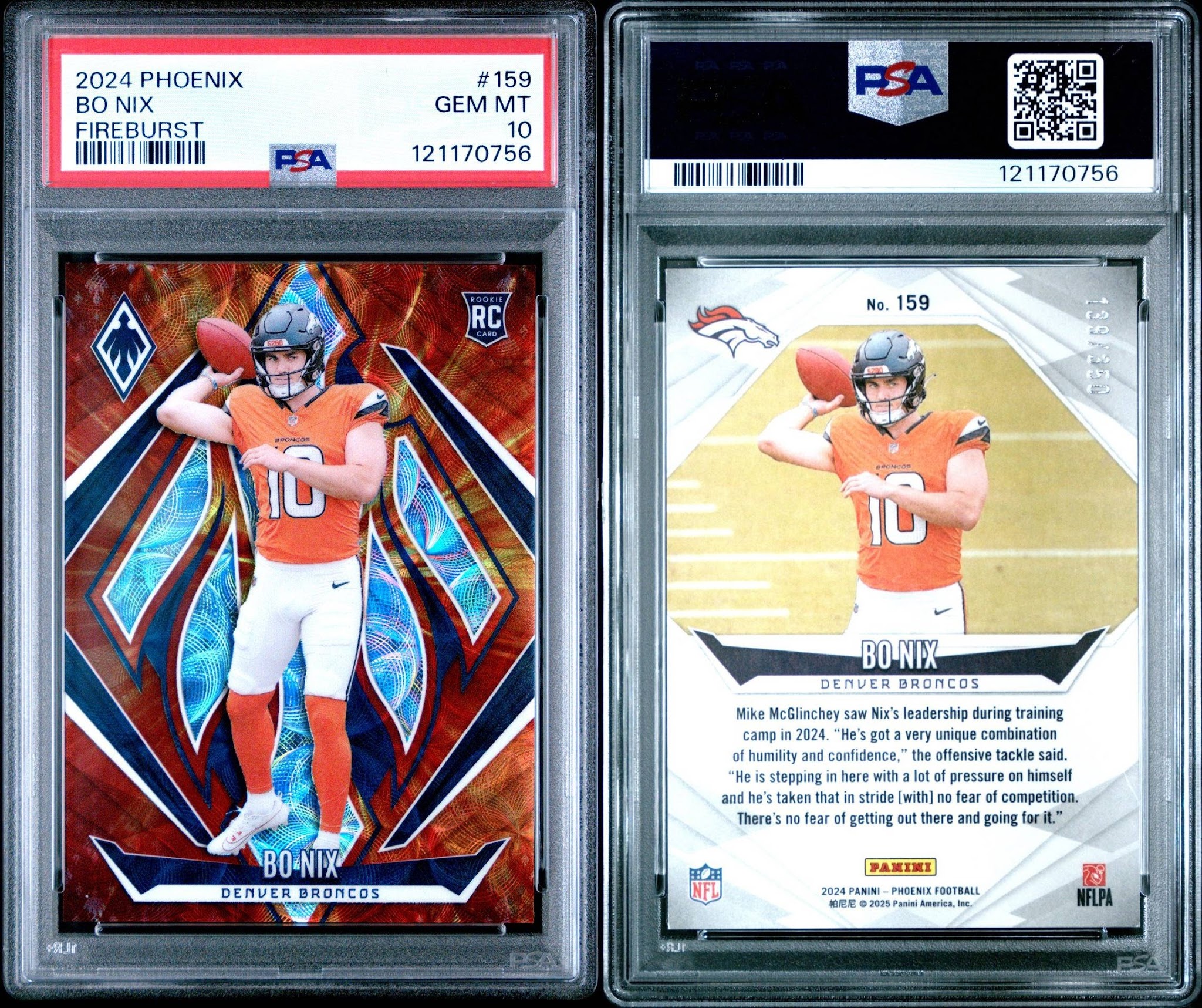 The Fireburst design features Phoenix’s signature explosive foil pattern, vivid refractor colors and a dynamic rookie presentation — and the PSA 10 grade confirms absolute top-tier condition with flawless surface, pristine edges and perfect corners.